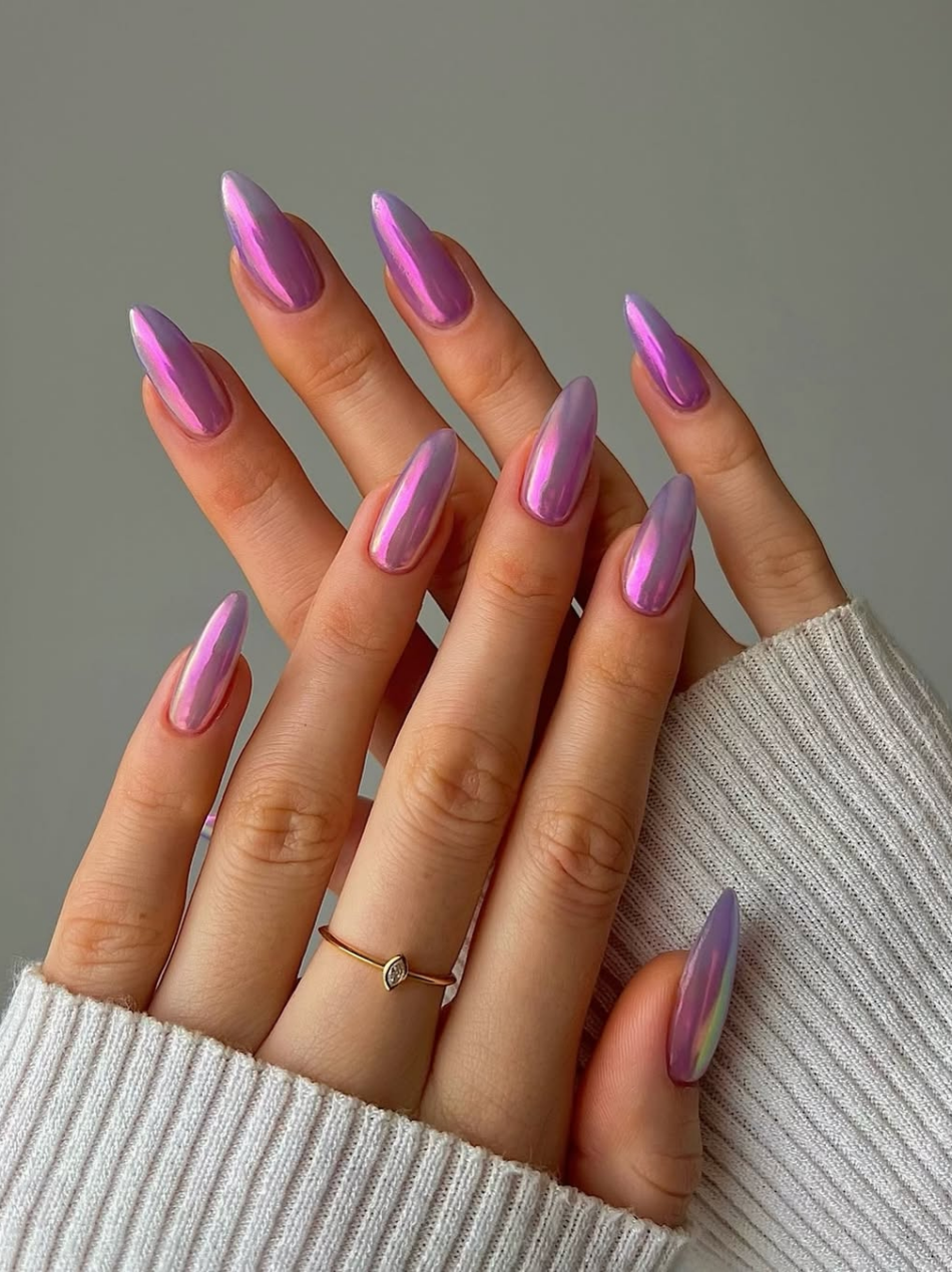A textura em gel potencializa o acabamento espelhado e ajuda a manter o efeito por mais tempo. Nesse caso, o esmalte térmico é curado em cabine UV/LED, o que garante maior resistência e durabilidade, ideal para quem busca unhas intactas por semanas.