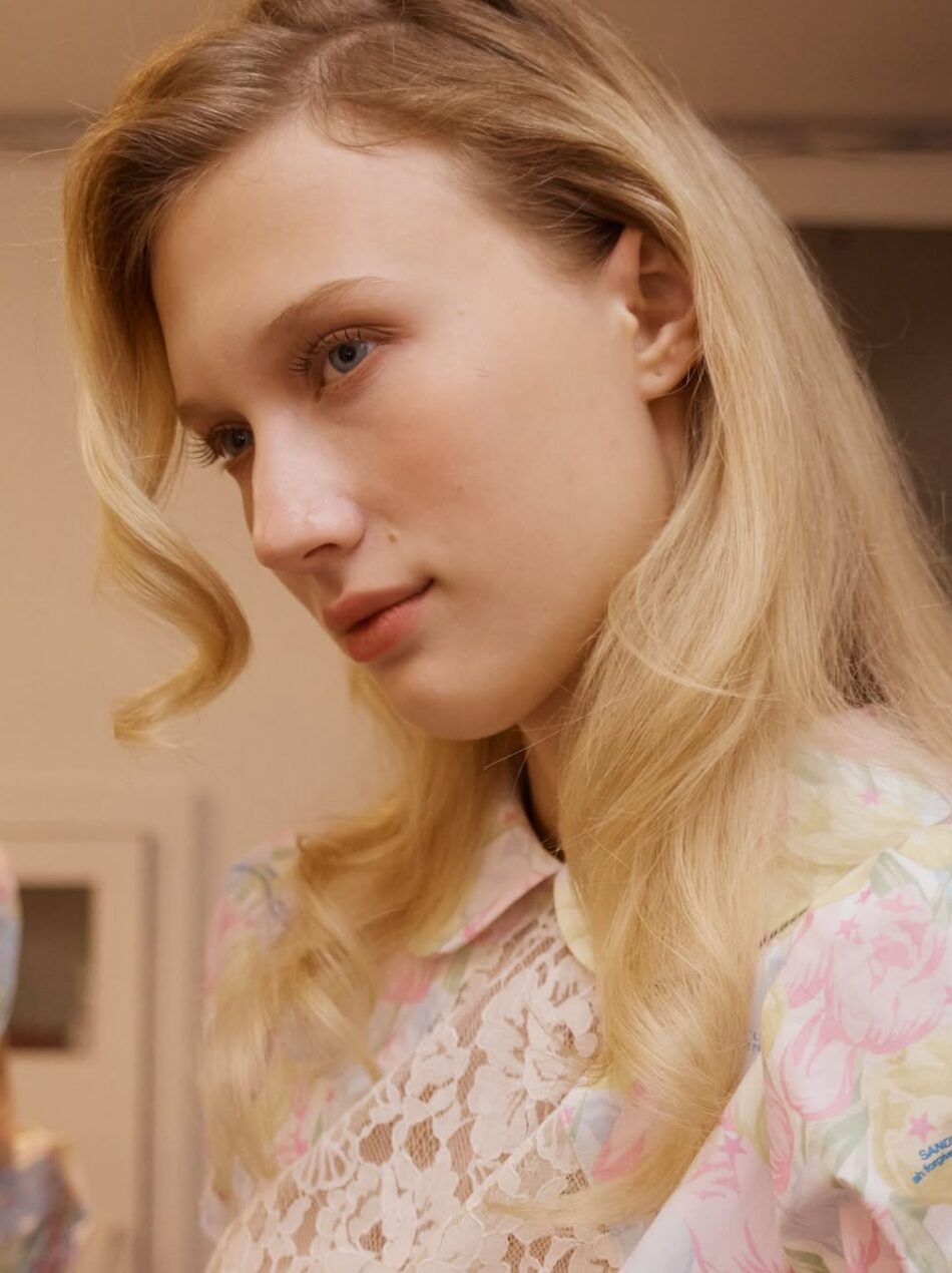 A beleza assinada por Charlie Riddle, diretor global de maquiagem da Stila Cosmetics, propõe um visual que foge da maquiagem convencional e aposta na suavidade como linguagem. “Esse look é todo sobre contenção. Queria criar algo suave, com perfume downtown e apelo fofo”, disse Charlie em entrevista ao portal internacional Byrdie.