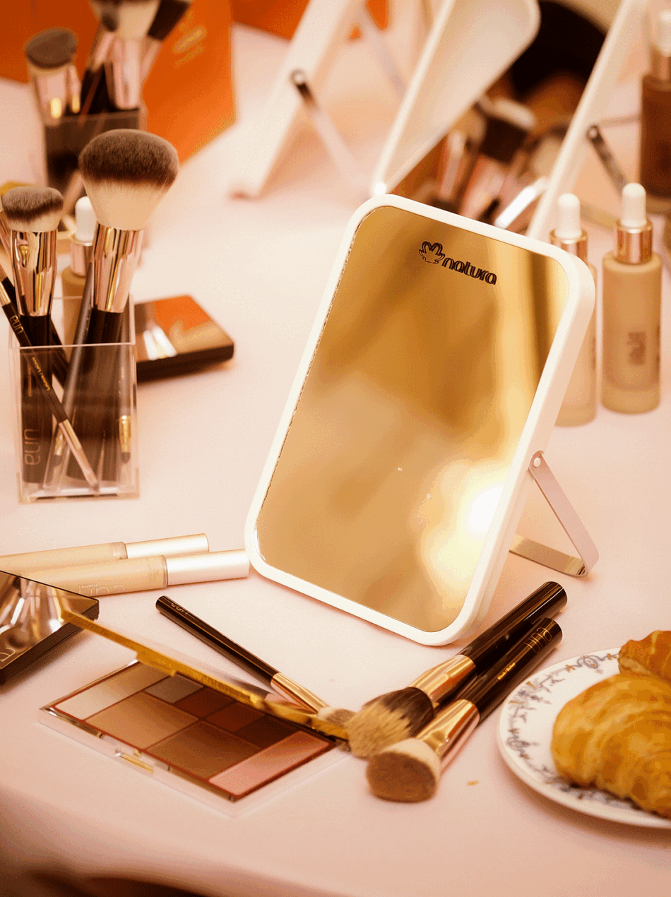 Entre os grandes destaques do salão Vendôme, um espaço conquistou olhares e corações: a Beauty Station da Natura. Mais do que uma bancada repleta de makes da linha Natura Una, o ambiente foi um convite a vivenciar a beleza de forma sensorial e acolhedora, que traduzia a essência da marca de realçar a beleza natural enquanto trata a pele. Sob o olhar atento da beauty expert Angélica Moraes, convidadas e convidados puderam receber um atendimento personalizado e dicas valiosas, que iam desde pequenos retoques até produções completas, para sair de lá prontos para os desfiles e compromissos do dia.