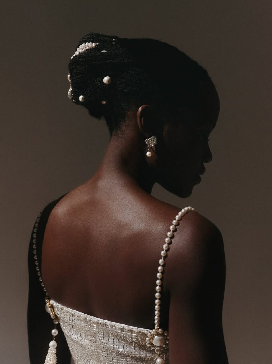 Para quem prefere o cabelo solto, a dica é investir em um acessório statement, como tiaras de corrente, presilhas de pérola ou coroas metálicas. A naturalidade dos fios soltos, combinada com o poder visual do acessório, cria um contraste moderno e elegante.