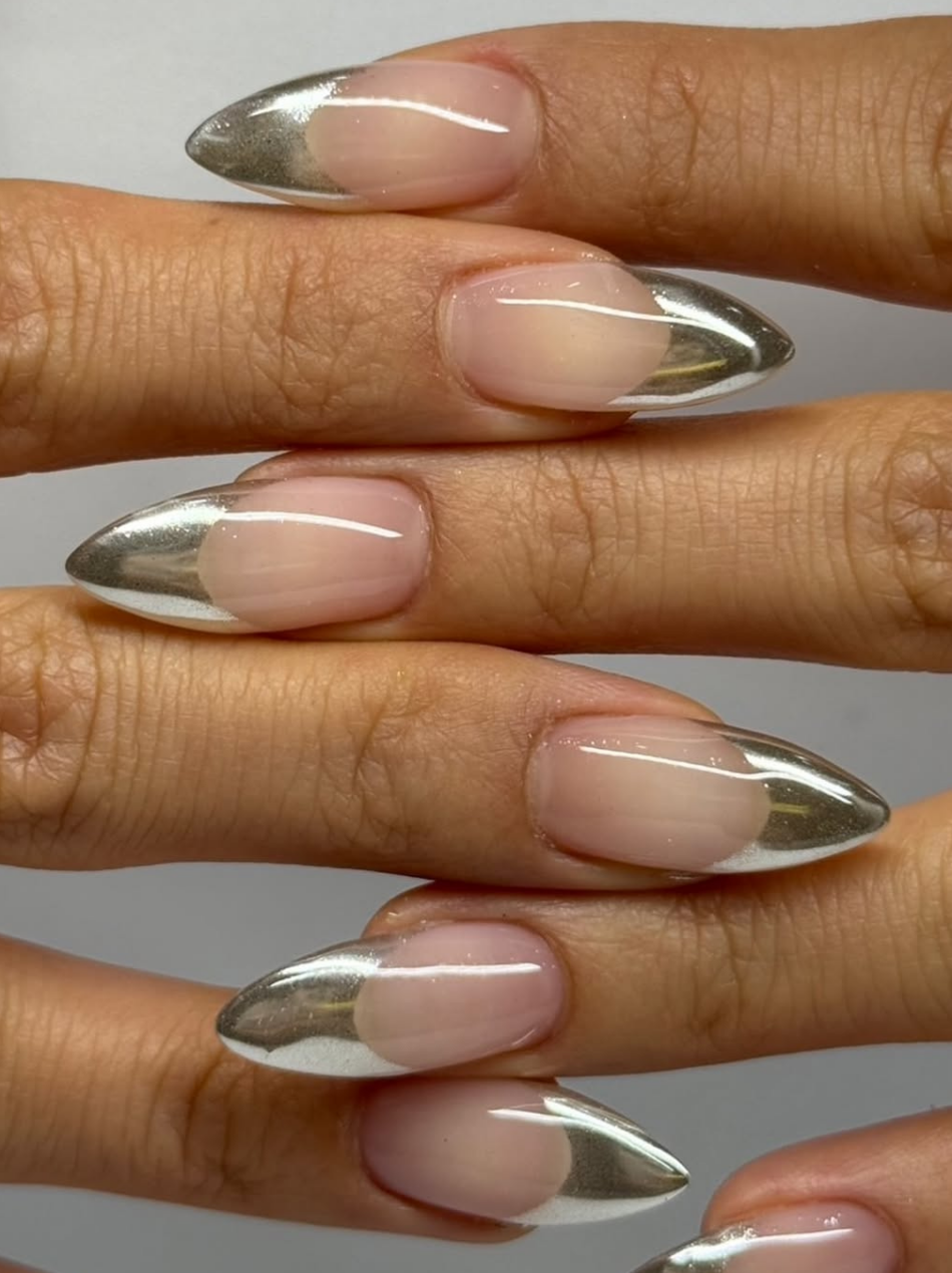 A clássica francesinha ganha uma releitura futurista com o efeito cromado. Esta é a opção ideal para quem busca um equilíbrio entre discreto e chamativo.