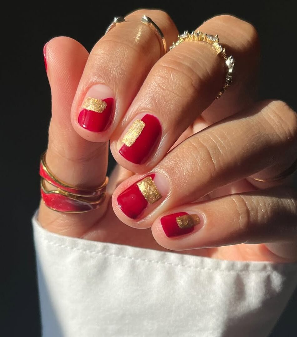 Das versões artsy às texturizadas, as unhas decoradas vermelho com dourado são a aposta certa para quem quer entrar no clima natalino até a ponta dos dedos.
