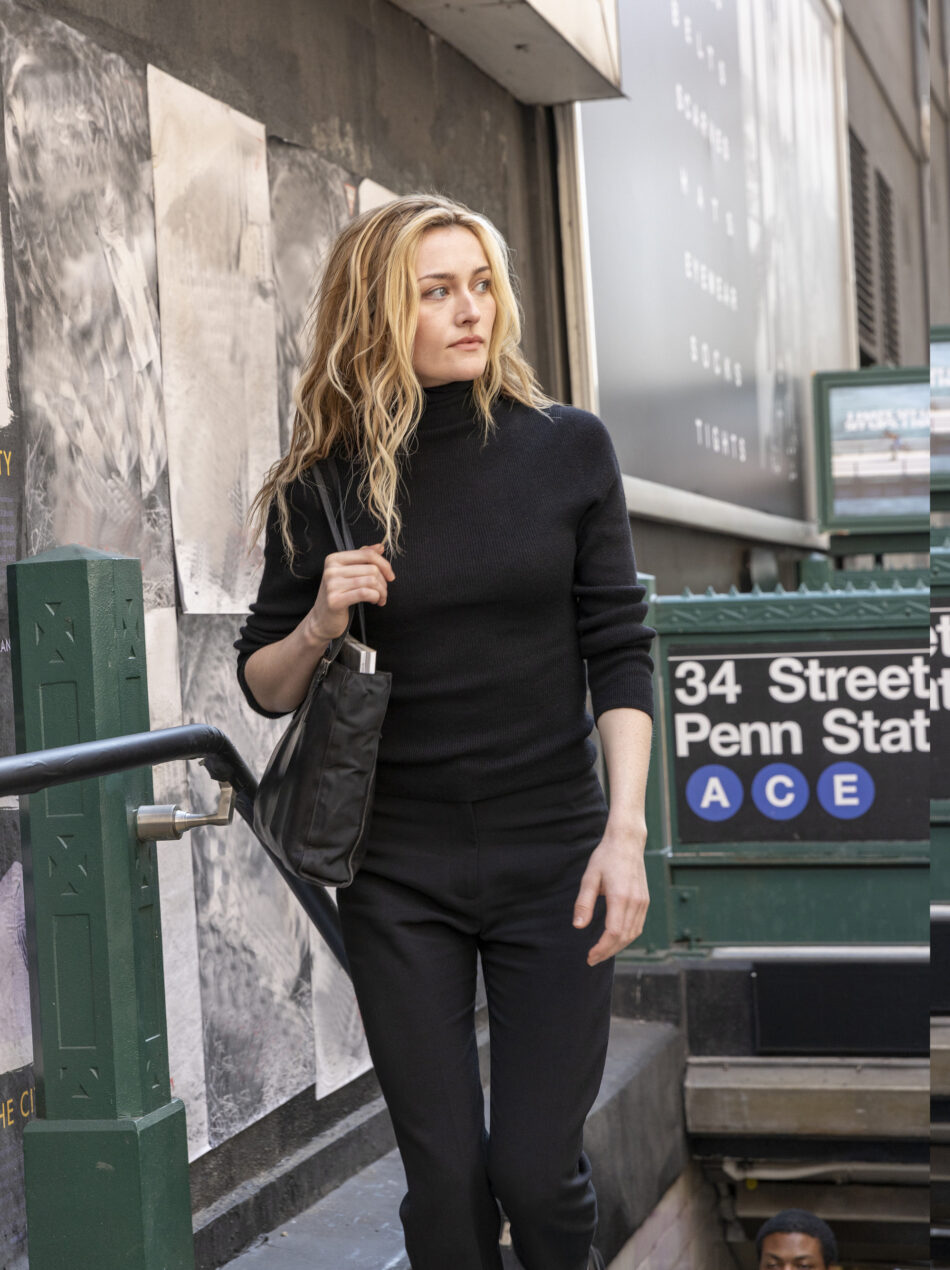 “Minha equipe e eu procuramos (referências) em todos os lugares – online, em revistas, livros, vídeos e filmes da época –, onde quer que pudéssemos encontrar nuances do período para ajudar a tornar nossa série o mais autêntica possível”, conta Rudy à ELLE. “Usamos quase que exclusivamente peças vintage da Calvin Klein para as cenas de escritório (da grife), inclusive nos figurantes. Era importante para mim que o visual fosse o mais realista possível, porque foi uma época revolucionária na moda, toda uma era minimalista”, diz. “Também usamos muitas peças vintage da Prada, Valentino, Manolo Blahnik e Yohji Yamamoto.” Um dos itens mais difíceis de encontrar foi um casaco masculino Patagonia que Carolyn vestia em uma briga com John em um parque nova-iorquino, registrada pelos paparazzi. Depois de muita procura, foi localizado na versão japonesa do site do eBay.