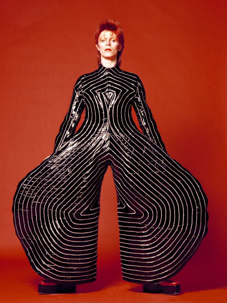 Bowie vestindo macacão criado por Kansai Yamamoto para a turnê de Alladin Sane (1973) Foto: Masayoshi Sukita © Sukita The David Bowie Archive 2012