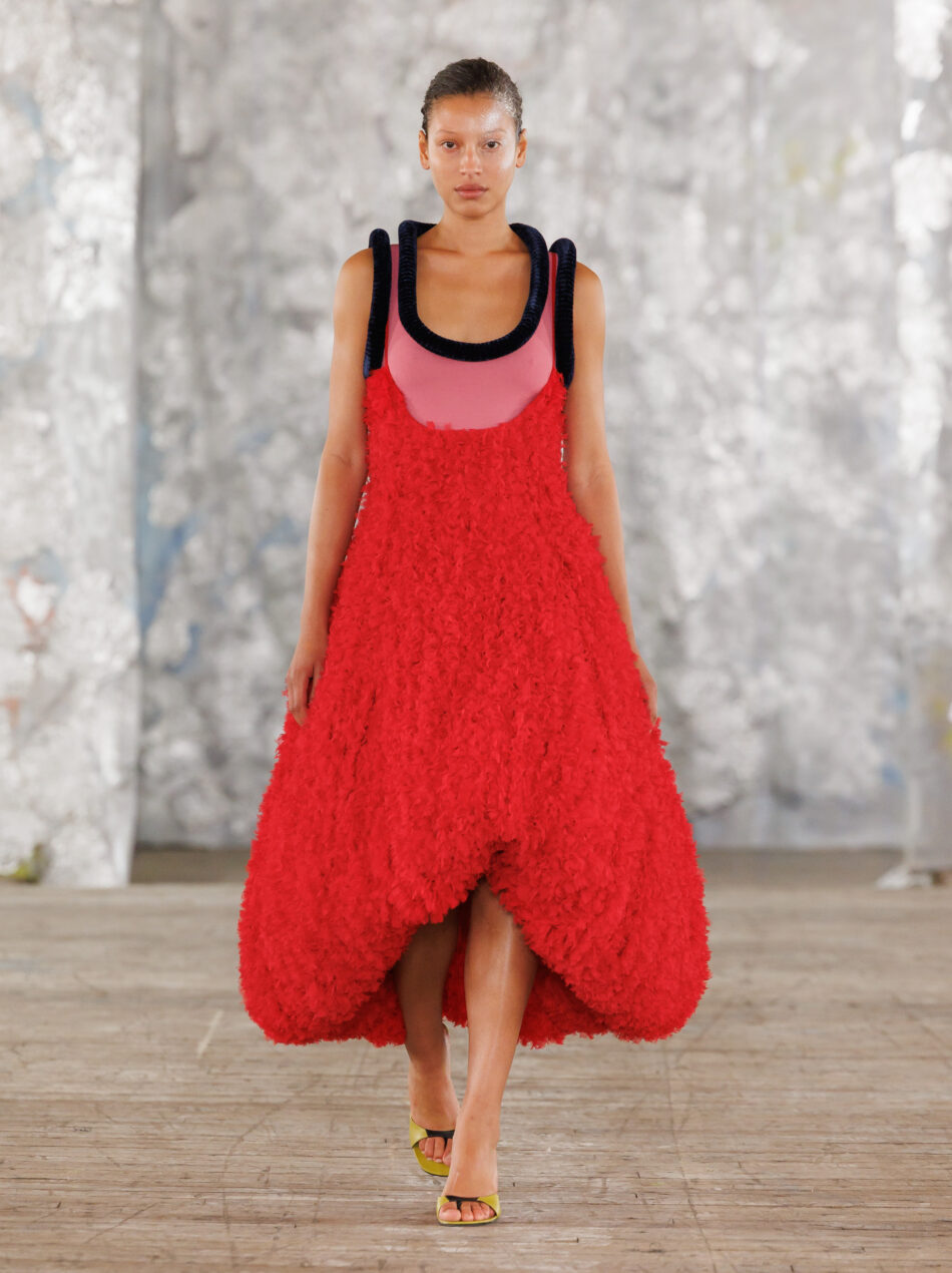 Este é o segundo ato de Rachel Scott nesta edição da NYFW: na última quarta-feira (10.09), a estilista jamaicana mostrou sua primeira coleção como diretora criativa da Proenza Schouler. Nesta segunda-feira (15.09), foi a vez da sua própria marca, a Diotima, estrear na passarela. A etiqueta já esteve no calendário oficial do evento, mas realizou apenas apresentações em showroom. Desta vez, o cenário escolhido foi o Greenpoint Terminal Warehouse, no Brooklyn.