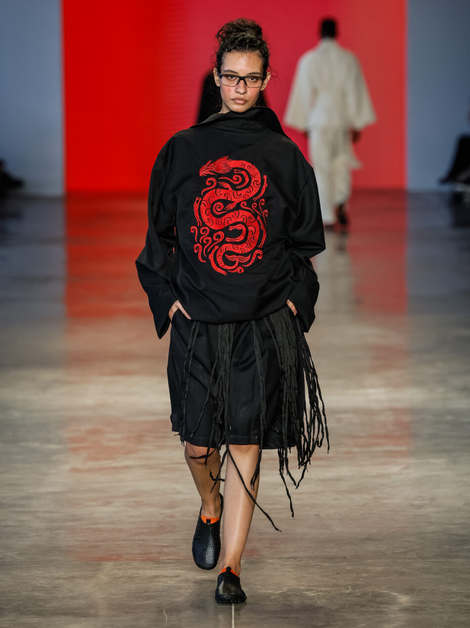 Muita gente acha que David Lee é nome e sobrenome, mas é um nome composto”, explica o estilista cearense assim batizado. É que seu pai é fã de Bruce Lee, o artista, ator, diretor, produtor e roteirista. Queria que o filho se chamasse como o ídolo, mas a mãe interviu. Concedeu apenas uma parte do desejo. Vêm dessa história familiar uma série de referências a roupas e elementos de culturas asiáticas da nova coleção do designer, apresentada neste penúltimo dia da SPFW N60.