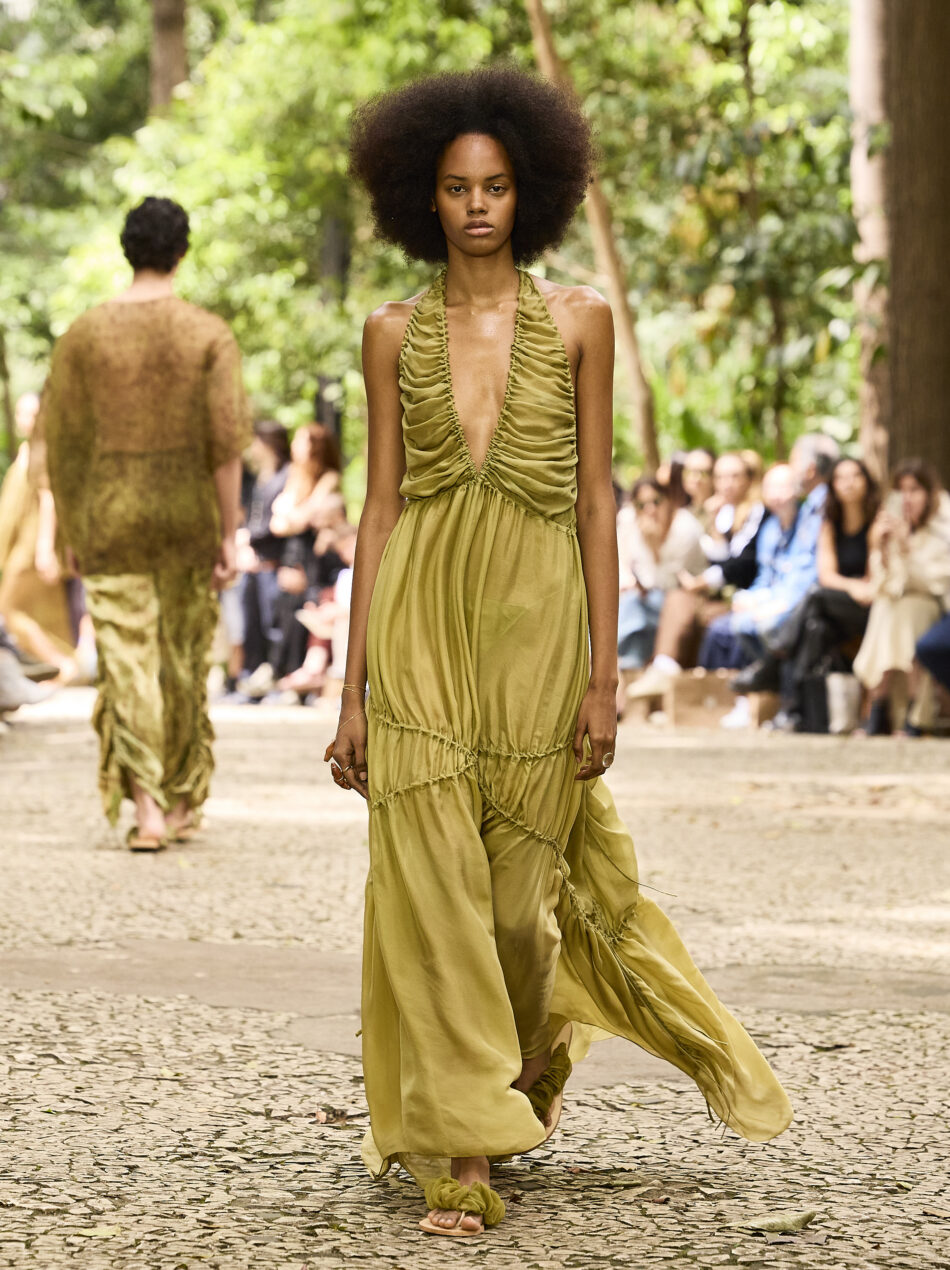 A marca desfilou somente uma vez, na 47ª edição da SPFW, em 2019. Nesses últimos seis anos, muita coisa mudou: a designer teve um filho e se mudou para Paraty, no Rio de Janeiro. Passou a viver na floresta, como ela mesmo descreve, e precisou repensar o futuro da grife.