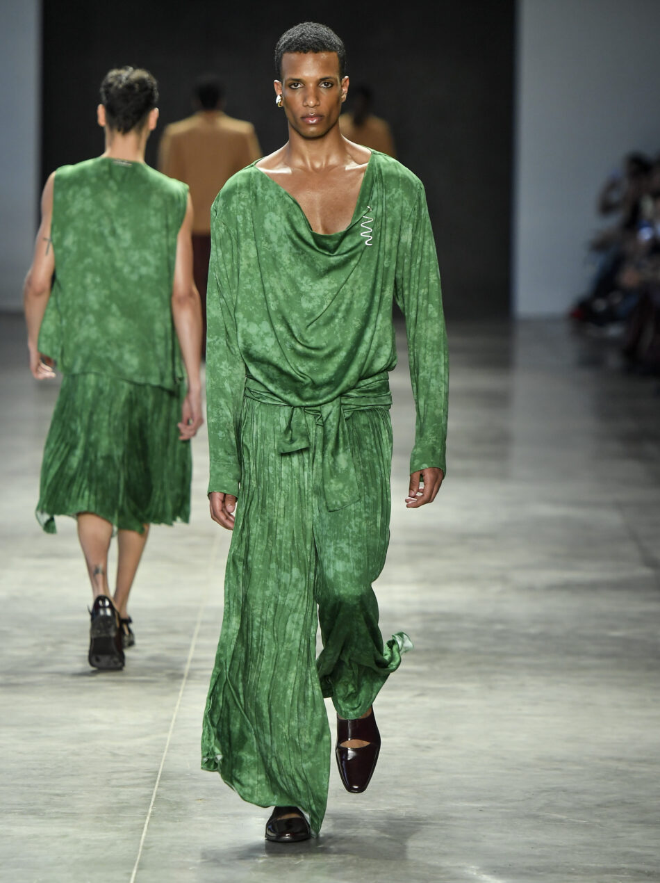 Rafael Caetano homenageia o poeta Antonio Cicero com uma alfaiataria desconstruída e maior abertura para a fluidez.