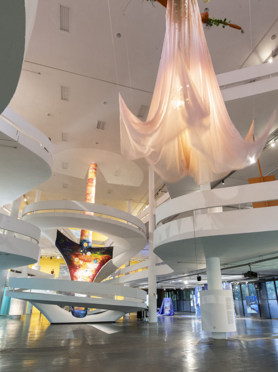 Distribuídos por todo o pavilhão – que teve expografia com tecidos suspensos, de formas ondulares –, os outros capítulos tratam de questões como interações entre humanos, fenômenos espaço-temporais, diferentes formas de relação com o mundo, transformações, marcas deixadas por deslocamentos e, por fim, a beleza.