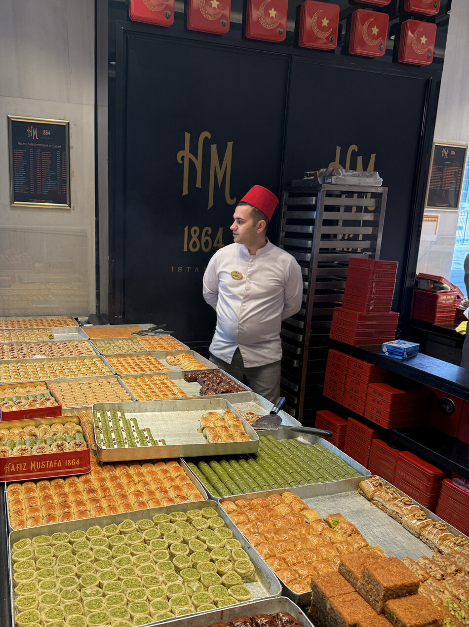 Vendedor na lojas de doces Hafiz Mustafa, em Istambul. Foto: Patricia Oyama