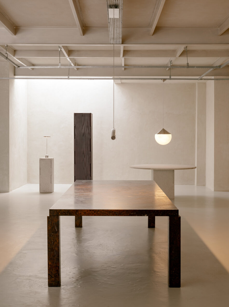 “Os materiais principais são pedra e madeira”, disse. “Tem duas coisas que me inspiram, que eu tento colocar na marca. Uma é esse rigor de um estilo de vida muito curado e limitado ao essencial, e também trazer informações da natureza para dentro de casa.”