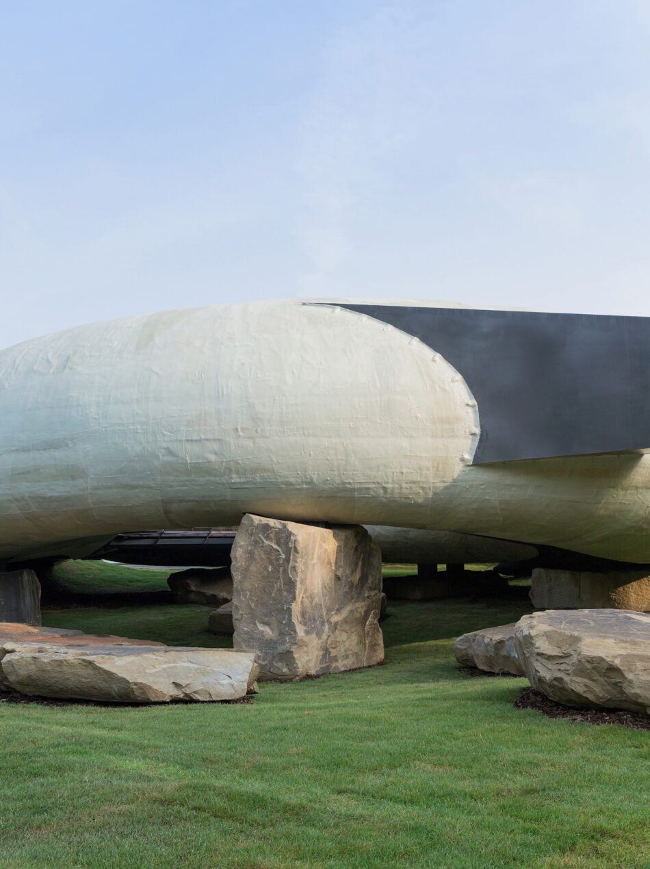 No Pavilhão da Serpentine Gallery (Londres, Reino Unido, 2014), um teto translúcido de fibra de vidro repousa sobre enormes pedras estruturais de origem local. A luz é filtrada em vez de ser exibida, e o espaço permanece parcialmente fechado, permitindo que os visitantes vivenciem o refúgio sem estarem completamente isolados do parque circundante.