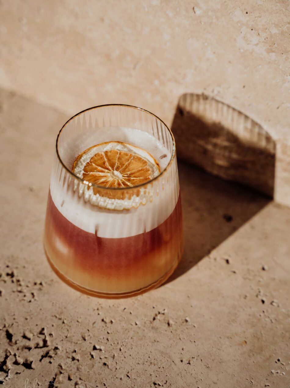 6. Finalize com uma casca de laranja torcida sobre o copo para liberar os óleos cítricos, combinando com o café e o amaro.