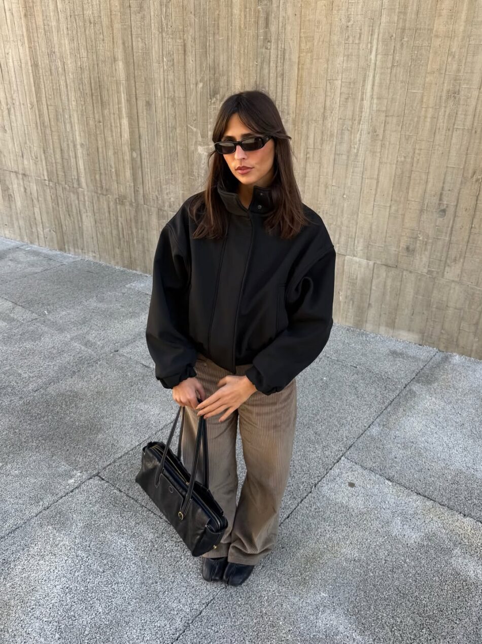 Outro ponto é a variedade. Há versões cropped, oversized e mais ajustadas, que permitem diferentes leituras. No styling, a jaqueta bomber ganha força no contraste com peças mais alinhadas, como alfaiataria ou vestidos leves, quebrando a obviedade. Confira alguns modelos para investir agora: