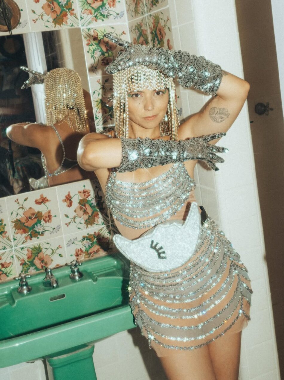 Isso tem muito a ver com imagem. Os acessórios de Carnaval mais desejados hoje são aqueles que funcionam em movimento, refletem luz e performam bem em foto e vídeo. Franjas que balançam, superfícies espelhadas e pedrarias estratégicas não são só estética: são pensadas para brilhar no feed, reels, stories e close friends.