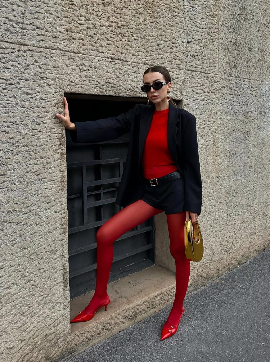 Combinar a cor do scarpin com o tom da meia-calça é um truque simples, mas que traz acabamento: ele oferece uma sensação de continuidade e deixa o visual mais coeso.