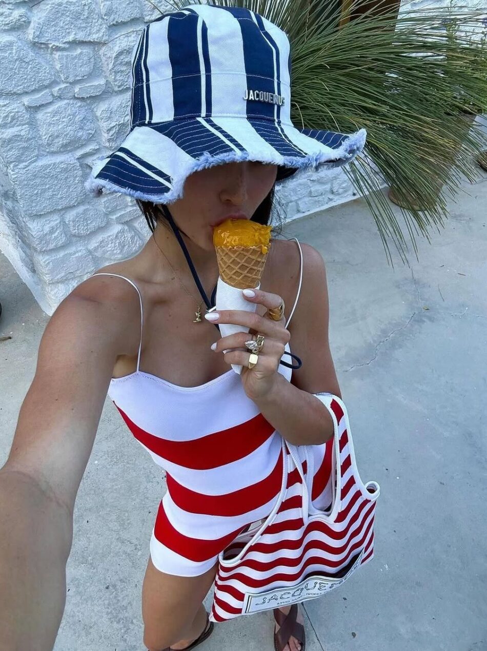 Vestido leve, sandálias de dedo e o toque final do bucket hat. Nas produções mais frescas, a versão em palha ou trama natural é uma aposta que conquistou as fashionistas e é a cara do verão.