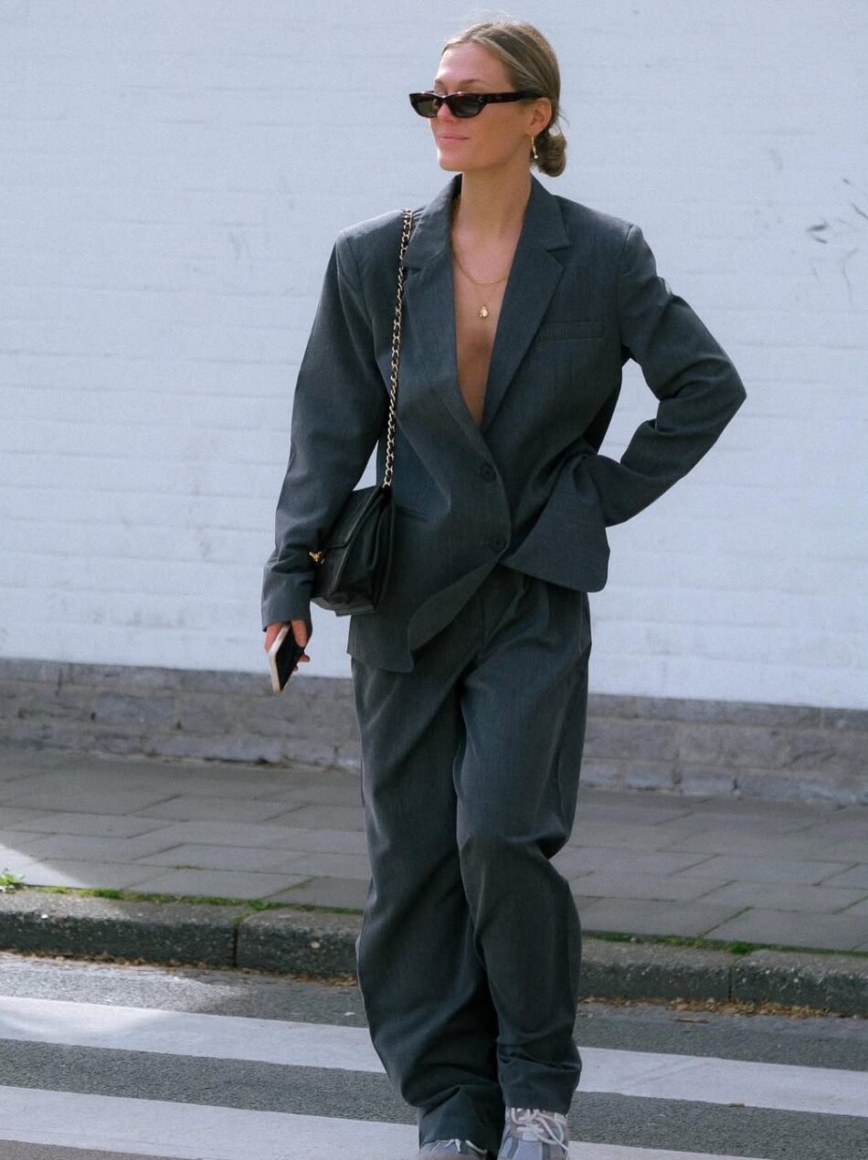 O conjunto de blazer e calça social ganha novos contornos com a adição dos tênis. Se por um lado a dupla de alfaiataria é considerada emblemática para desenvolver looks elegantes, por outro, ela se renova com a inserção do sapato despojado – e também com a brincadeira de cores.