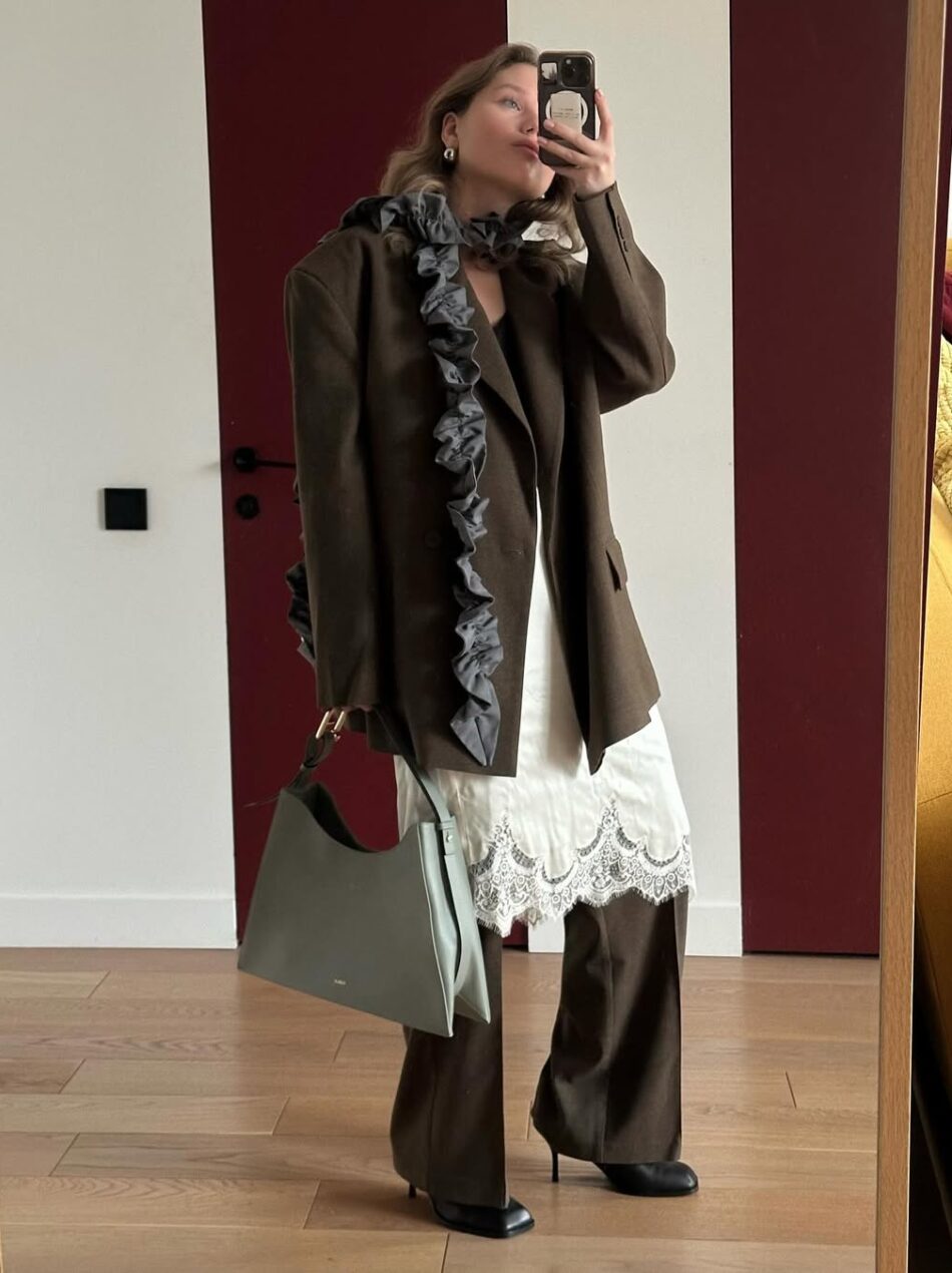 As sobreposições delicadas com blusas, saias ou vestidos de renda vêm conquistando o coração das fashionistas e são uma ótima opção para quem quer fugir do óbvio nos looks com calça de alfaiataria.