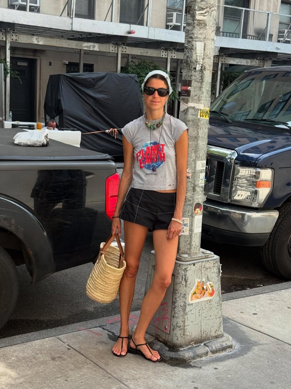 O design clássico, com tira central e fechamento no tornozelo, retorna direto dos anos 2000. Leandra Medine mostra como o T-strap pode ser versátil, funcionando tanto em propostas casuais quanto em looks mais arrumados, sempre com um toque vintage cool.