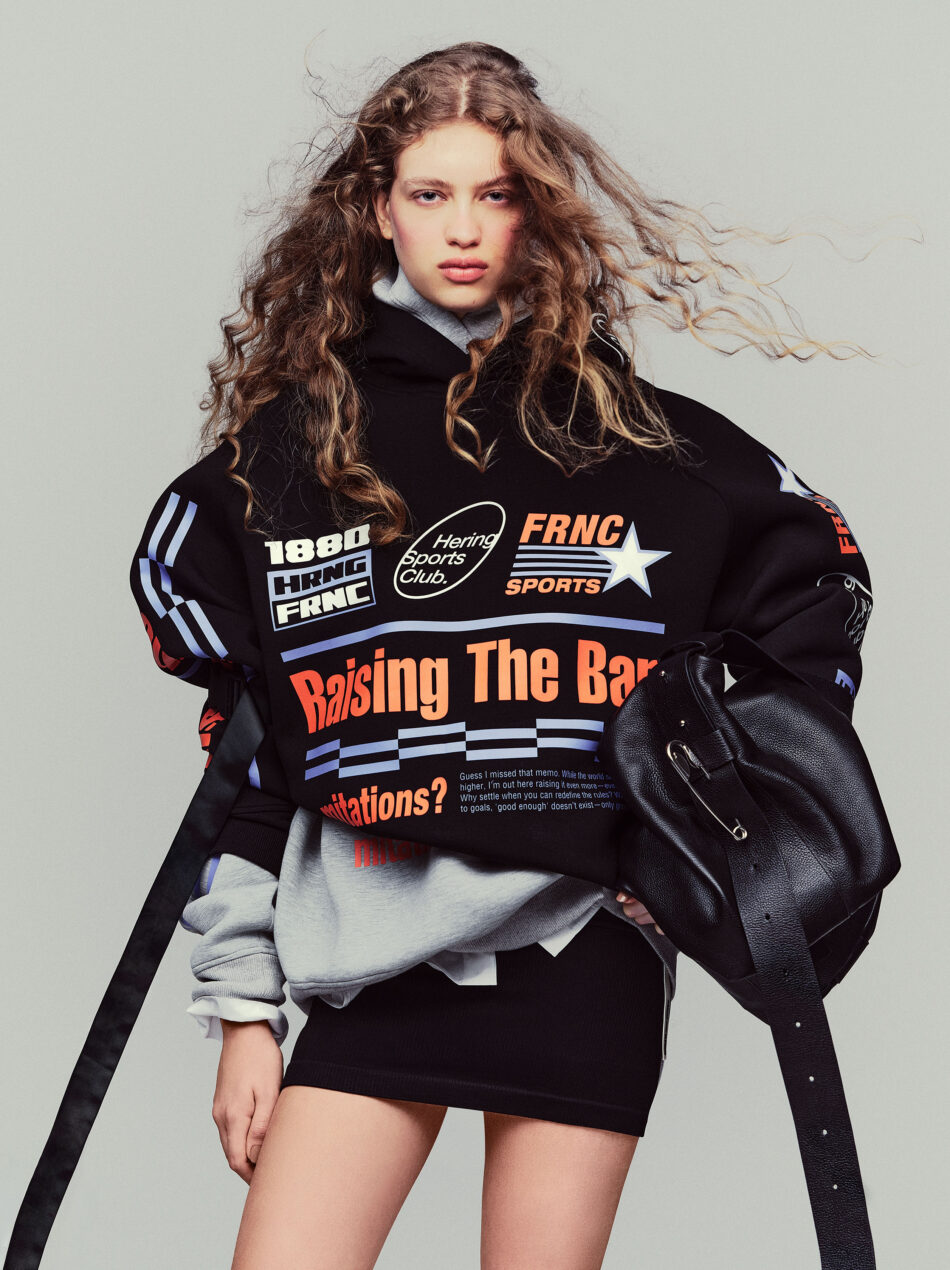 “Sempre pensamos em dialogar com o espírito do tempo, e a Francesca consegue capturar toda a contemporaneidade que buscamos”, fala Victoria Toni, diretora de marca da Hering. “Nossas parcerias têm trazido novos consumidores, geralmente mais jovens. Faz parte da nossa estratégia”, continua. Foi a primeira vez que Francesca experimentou com moda esportiva. “Fiquei animada, pois sou muito adepta ao conforto. Gosto de praticidade, de roupas que trabalham para a gente, não o contrário. E não tem uma pessoa no mundo que nunca tenha vestido roupa de ginástica para fazer tantas outras coisas além de malhar”, diz ela.
