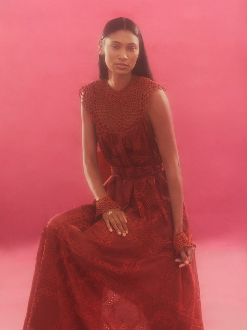 A maior parte da confecção acontece dentro da própria estrutura da empresa, em São Paulo, enquanto os itens manuais entram como camadas para ampliar o resultado final. “Não somos uma grife de artesanato”, pontua Roberta. “Agregamos essas técnicas para enriquecer o que fazemos.”