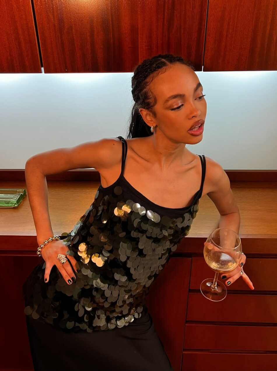 As composições all black com paetês são uma aposta certeira para trazer uma dose de brilho e glamour. Para complementar, você não precisa mais do que acessórios com um charme discreto, como é o caso do bracelete e dos brincos dourados acima. O que achou?
