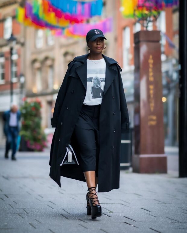 Se quiser fugir da sua cor clássica, experimente um trench coat preto como aliado dos looks invernais.