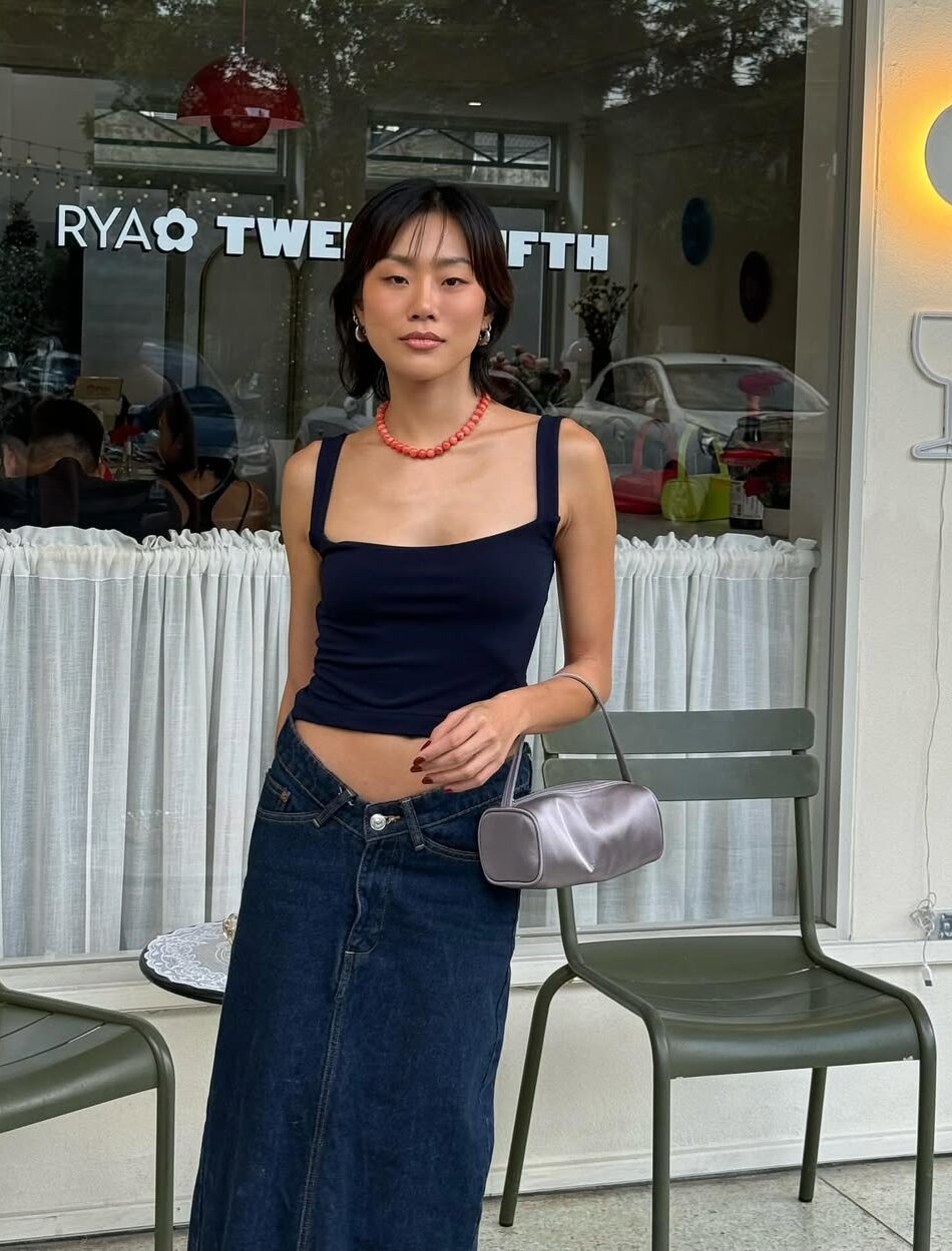 Outro jeito interessante de brincar com camadas no visual é optar por duas regatas de cortes diferentes e usar uma sobre a outra. Se quiser ir além, vale também ousar nas sobreposições na parte de baixo. A saia vestida por cima da calça, por exemplo, é um truque que voltou com tudo.!