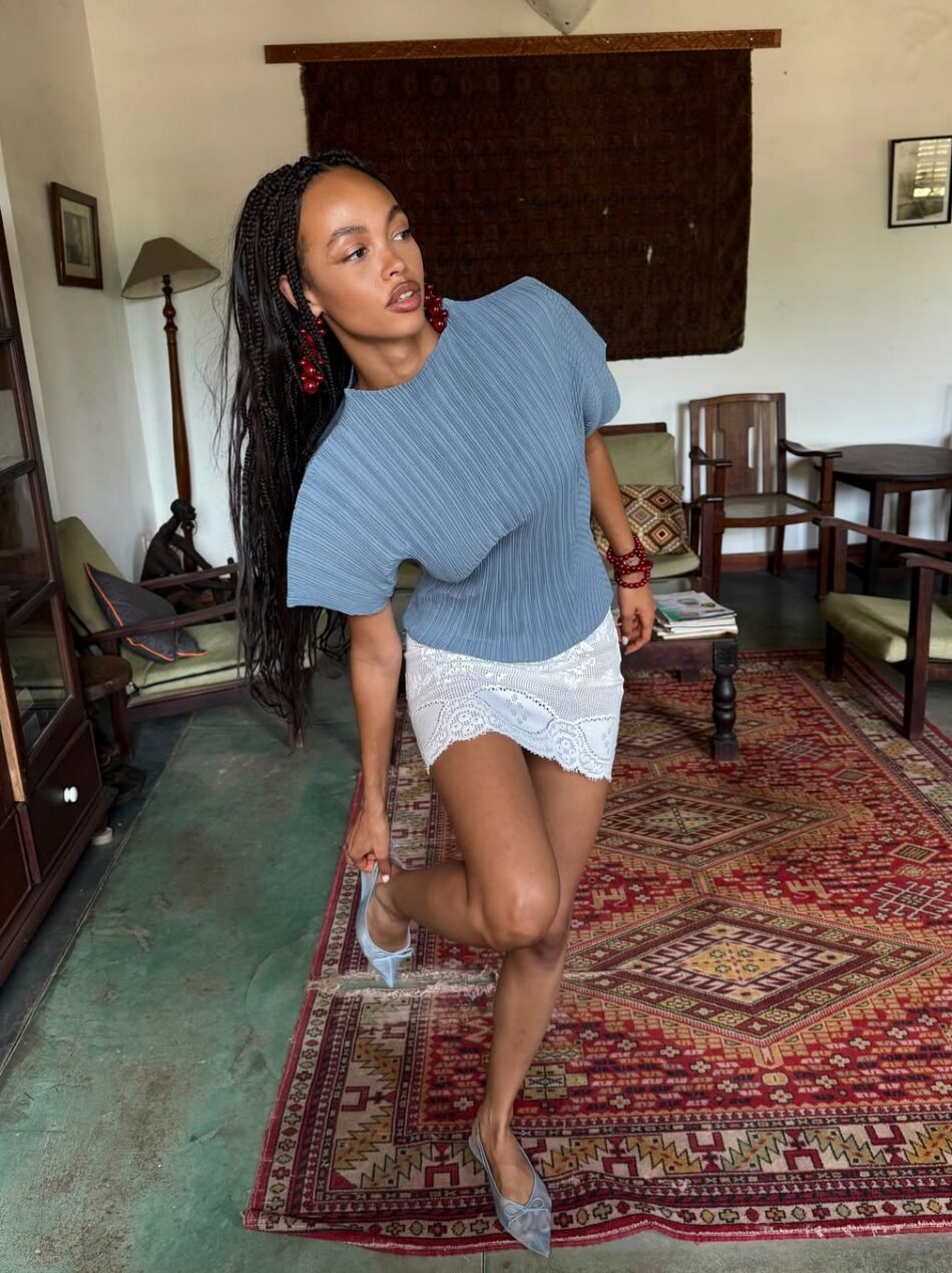 Tiras que sobem pelos tornozelos também são elementos que merecem destaque. Elas adicionam protagonismo imediato à sapatilha, e o detalhe ganha ainda mais evidência quando aparece ao lado de saias, shorts ou calças mais curtas, como os modelos pantacourt ou capri.