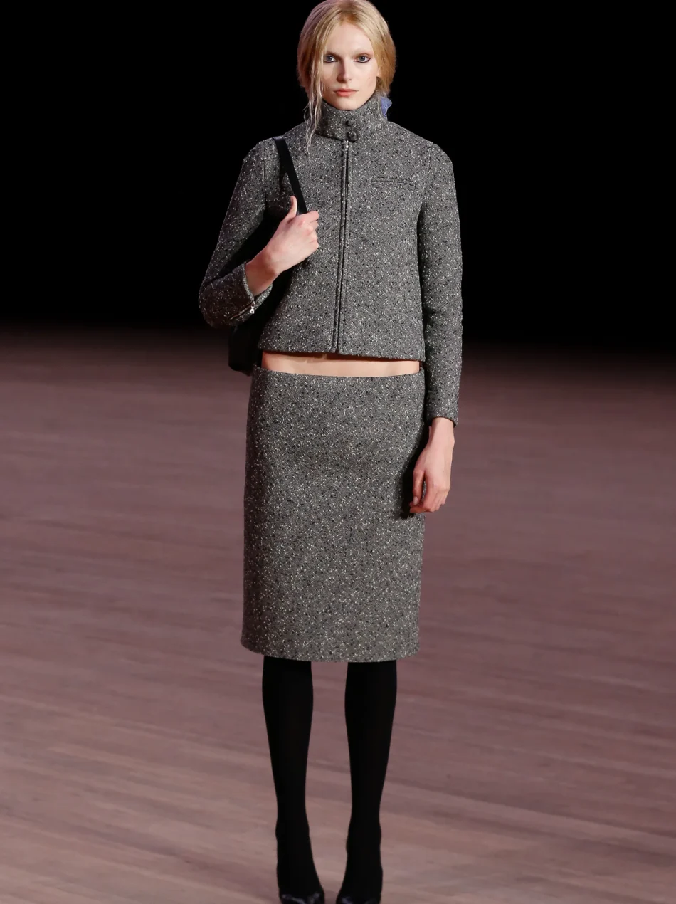 Em sintonia com as mudanças na moda de agora, Marc Jacobs reduz volumes e proporções e aposta em silhueta seca e alongada.