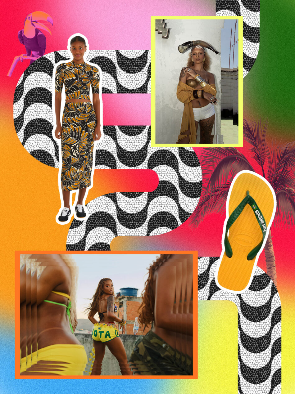 “Reforçar essa faceta e ter orgulho de sermos brasileiros foi algo muito lúcido na moda”, diz Thomàz. “Meu pai (Simão Azulay, da Yes! Brazil) e meu tio (David Azulay, fundador da Blue Man) tiveram um papel desbravador de assumir essa brasilidade e literalmente estampá-la. Foi quando a gente começou a querer vestir esse Brasil do tucano, da arara, do biquíni.”