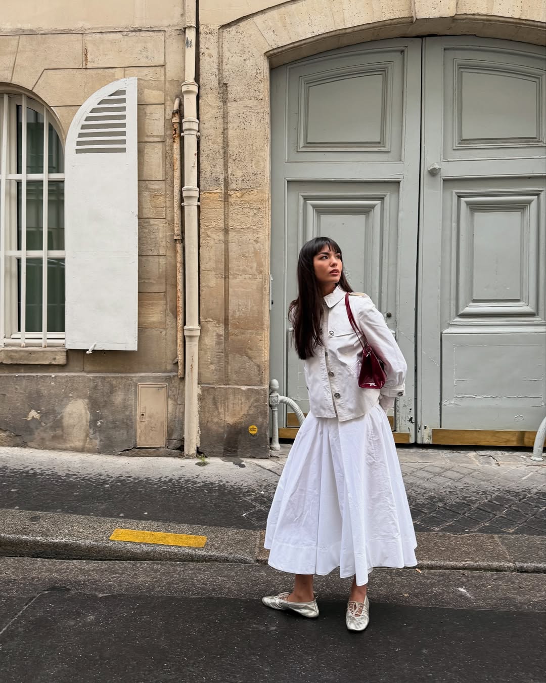 Às vezes, tudo o que você precisa para um look de inverno é uma saia simples e bem cortada, uma malha confortável e um toque de charme sutil, tipo uma sapatilha bem escolhida.