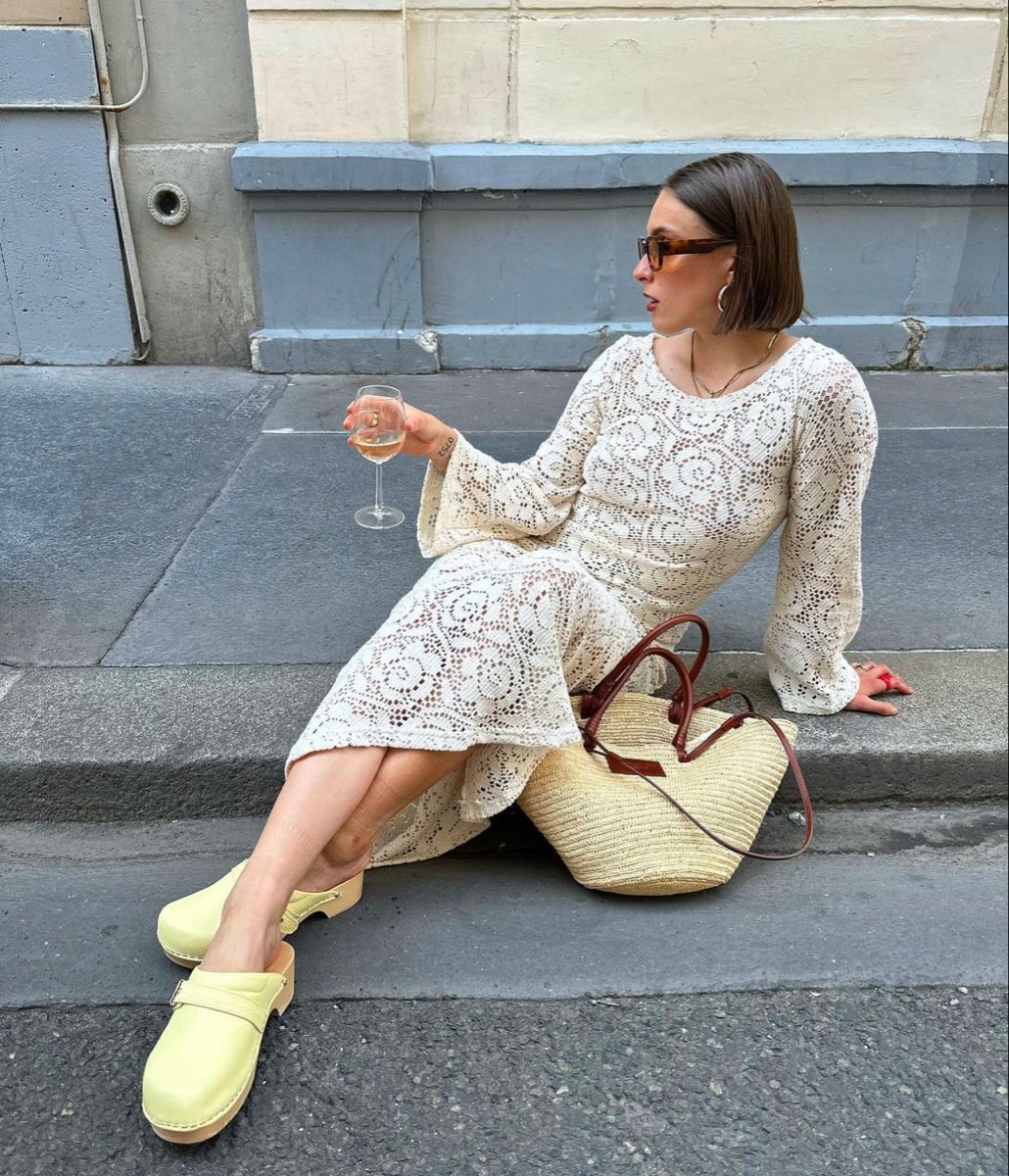 Aumente o frescor apostando em vestidos de renda, que combinam conforto e estilo em segundos. As bolsas de palha formam uma dupla imbatível com o sapato clog de tom vibrante.
