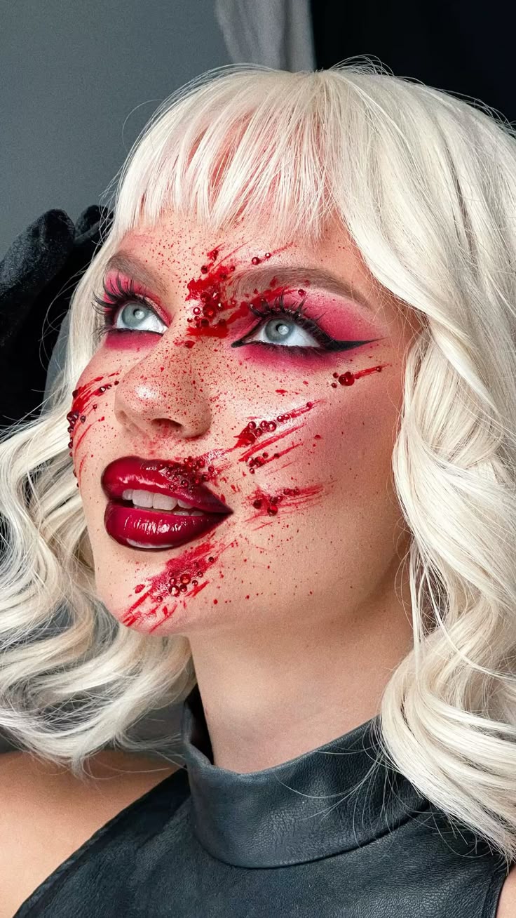 Quer um visual impactante? Aposte no delineado de sangue: transforme o gatinho clássico em um look de terror fashionista com traços vermelhos brilhantes e efeito molhado.