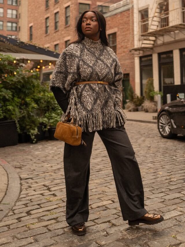 Aproveite as baixas temperaturas do inverno para explorar peças que não são viáveis em outras estações – como é o caso do poncho, que adiciona informação de moda ao look.